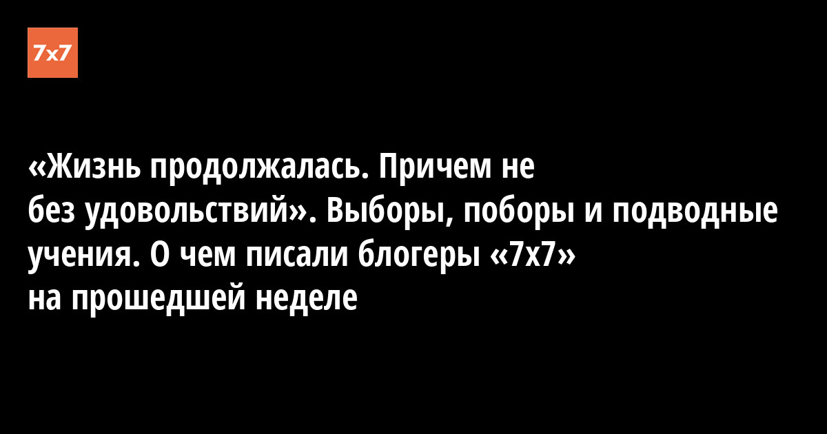 «Жизнь продолжалась. Причем не без удовольствий». Выборы, поборы и подводные учения. О чем писали блогеры «7х7» на прошедшей неделе