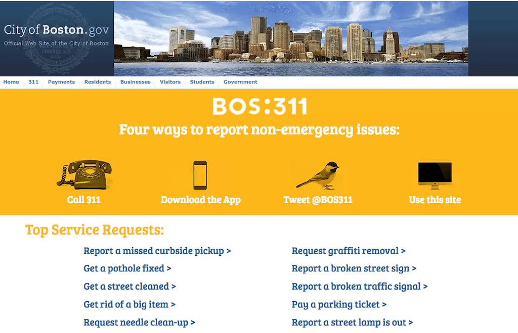 К примеру, в таком как 311 system, где общественное благо создается благодаря взаимодействию между властями и горожанами. Сервис 311 system, работающий в Бостоне, – это горячая телефонная линия и интернет-портал для отправки обращений по предоставлению госуслуг. Отправленное с помощью сервиса обращение помогает городским службам узнать о проблемах и принять меры по их устранению.