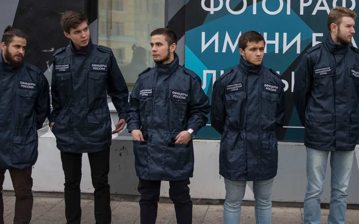 В воскресенье у галереи имени братьев Люмьер были как взрослые мужчины в камуфляже и берцах, так и юноши (и даже девушки) в разномастных джинсах и одинаковых куртках с шевроном «Оперативный молодежный отряд». Это подразделение «Офицеров России», как утверждается, уже несколько лет участвует в рейдах вместе с ГАИ, выявляет наркопритоны и бордели, ловит тех, кто выпивает на детских площадках, и мешает нелегальной торговле. «В советские времена активно действовали комсомольские оперативные отряды, которые принесли много пользы обществу, а их лидеры и активисты впоследствии продолжили работу на благо страны уже на руководящих государственных постах» — так объясняются цели и образцы поведения на сайте движения. Руководит молодежным отрядом Сабина Цветкова, жена основателя «Офицеров России» и тоже выпускница кафедры национальной безопасности РАНХиГС при президенте РФ. Впрочем, должностей и у нее много: она и председатель Благотворительного совета «Офицеров России», и заместитель председателя Общественного совета при МВД в Центральном федеральном округе, и заместитель председателя Общественного совета при УФСИН по г. Москве, и, в конце концов, руководитель оперного шоу «Aнгелы».