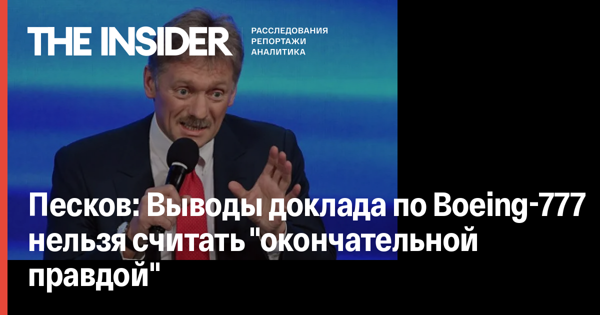 Выводы, сделанные в докладе международной следственной группы по расследованию крушения Boeing-777 на Украине, нельзя считать «окончательной правдой», заявил пресс-секретарь Владимира Путина Дмитрий Песков в интервью Би-Би-Си.