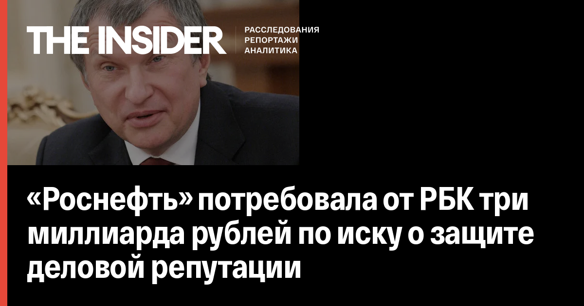 «Роснефть» в судебном порядке потребовала от РБК выплатить 3,124 миллиарда рублей по иску о защите деловой репутации, сообщает Rambler News Service.