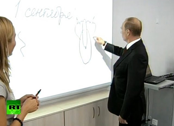 © RT Кот, вид сзади. Владимир Путин, документация проекта. 2013 Завершает распределение внимания людей, генерирующих трафик, из-за которого было парализовано функционирование социальных сетей североамериканской провинции Китая, дигитальная графика «Кот, вид сзади». Схематичное изображение животного было создано на встрече с учащимися одной из российских школ 1 сентября 2013 года. Уже привычное для художника обращение к животному миру посредством перформанса в данном случае было дополнено новыми технологиями и вниманием к образовательной ситуации.
