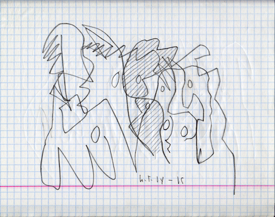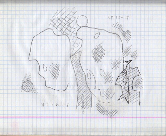 Рисунок в тетради. Иосиф Гинзбург, 2015 г., автоматическое письмо — А когда вы перешли на сторону абстракции?