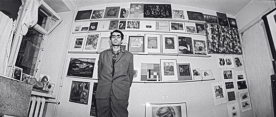 © Валентин Серов / courtesy Глеб Серов Иосиф Гинзбург в своей квартире. Предварительные квартирные просмотры к Всесоюзной независимой выставке, весна 1975 г. — Иосиф, я недавно увидел эту фотографию в одном музее, и меня она всерьез озадачила… В экспликации написано, что это предварительные просмотры к Всесоюзной выставке независимых художников на ВДНХ, квартира художника Иосифа Гинзбурга, 1975 год. Где это? Это вы? Это ваши работы на стене?