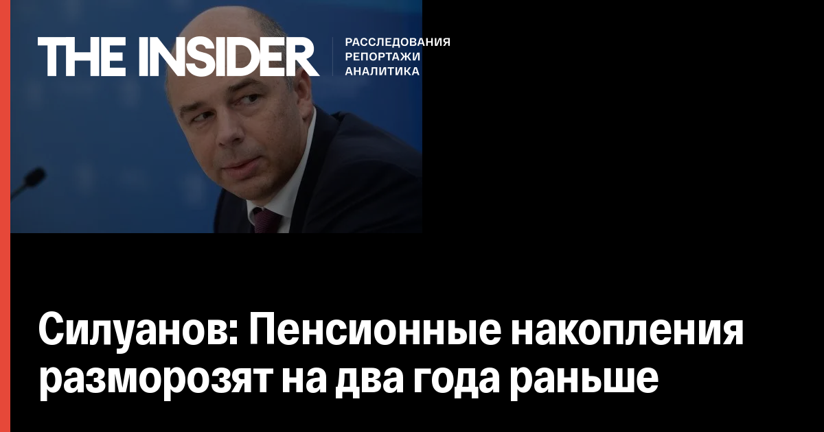 Силуанов: Пенсионные накопления разморозят на два года раньше