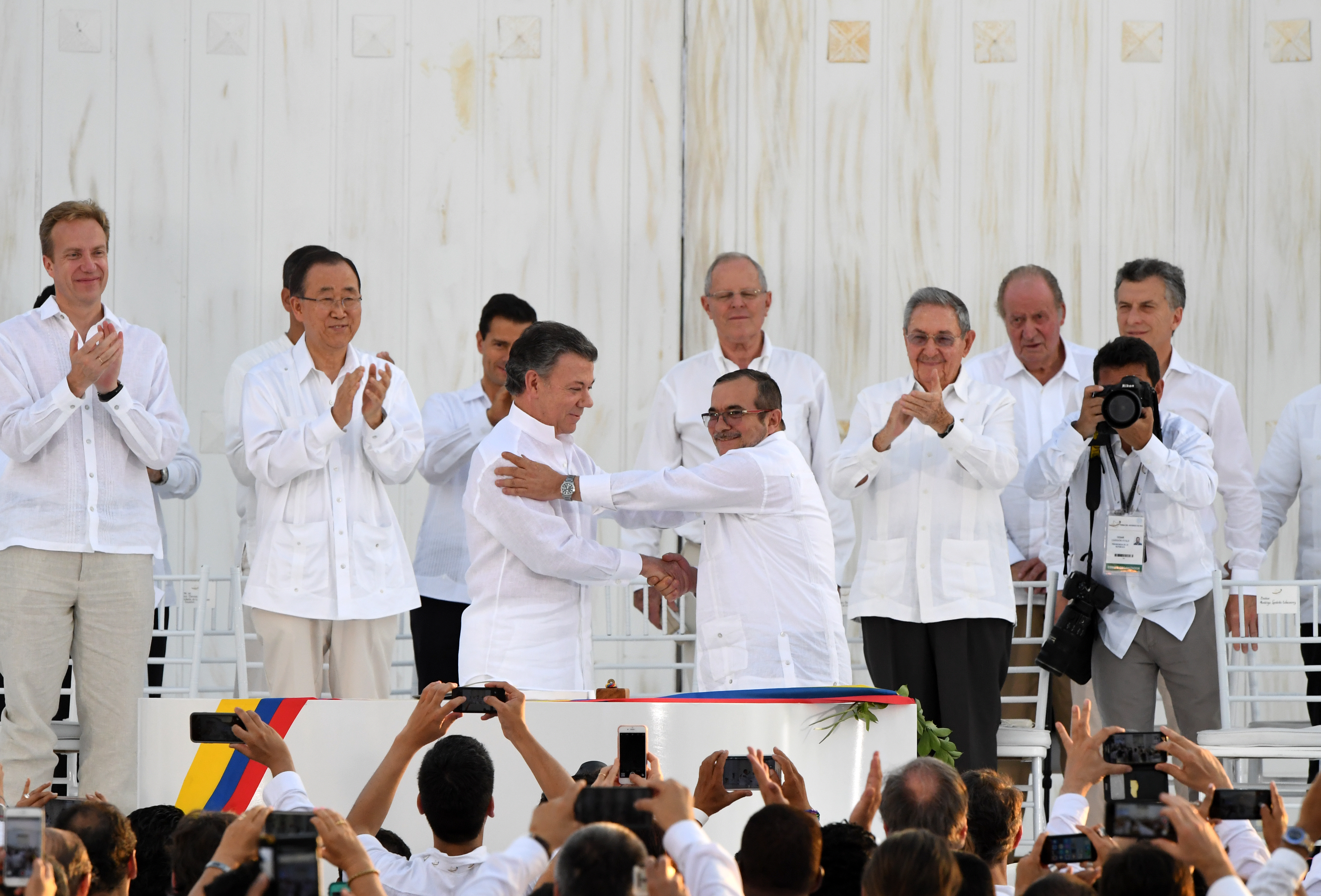 Поддержать нынешнее перемирие отказался бывший президент Альваро Урибе, который вместе со своими сторонниками участвовал в марше протеста на улицах Картахены. Урибе выступает против безоговорочной амнистии повстанцев и их перехода в разряд политических оппонентов. Урибе заявил, что он и его сторонники желают мира, но опасаются "ослабить демократию перед лицом терроризма".