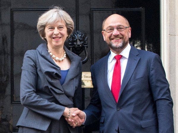 Премьер-министр Великобритании Тереза Мэй с председателем европарламента Мартином Шульцем. Фото: Number 10 Премьер-министр Британии Тереза Мэй заявила, что формальная процедура отделения ее страны от ЕС начнется не позднее конца марта 2017 г. Прежде британское правительство не ставило определенных сроков, несмотря на то, что европейские лидеры настаивали на этом.