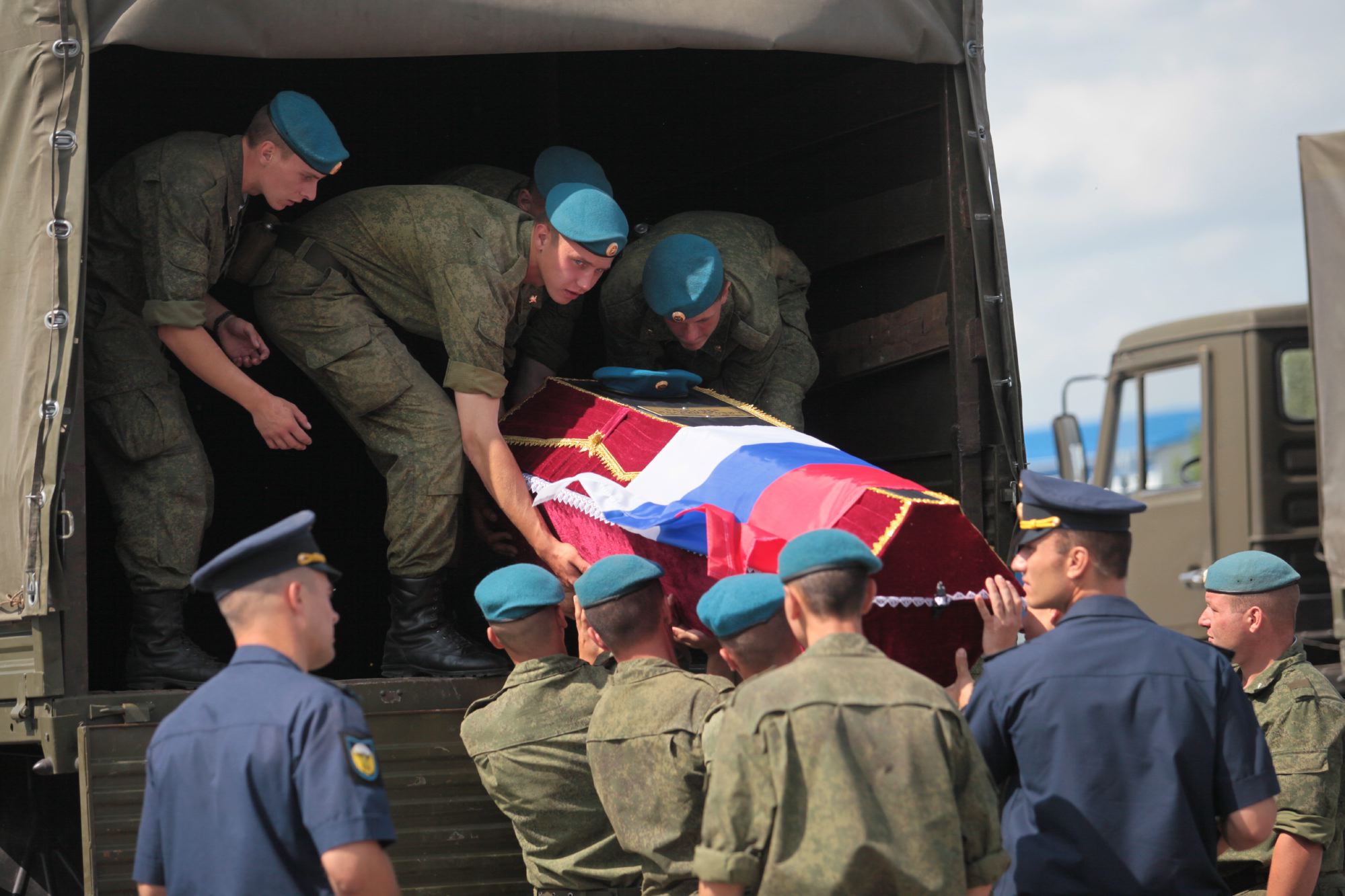 12 июля 2016 года. В 242 учебном центре ВДВ приспущены флаги. Военные и штатские вспоминают события годовой давности, когда обрушилась казарма третьего учебного парашютно-десантного батальона: из 337 служивших ребят под завалами оказались 42 солдата, 24 погибли. Среди них был Валера Лебедев, сын Оксаны.