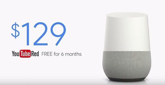 Google Home: 129 долларов, плюс полгода бесплатного доступа к YouTube Red (где нет рекламы). Предзаказы в США уже сегодня, доставка начнется с 4 ноября.