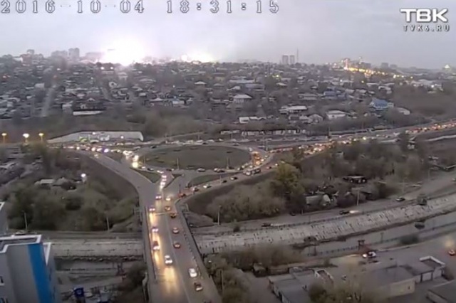 В Красноярске в мкрн Покровка 5 тыс. человек остались без света. Электричество исчезло после сильной вспышки, которая попала на камеру уличного видеонаблюдения.