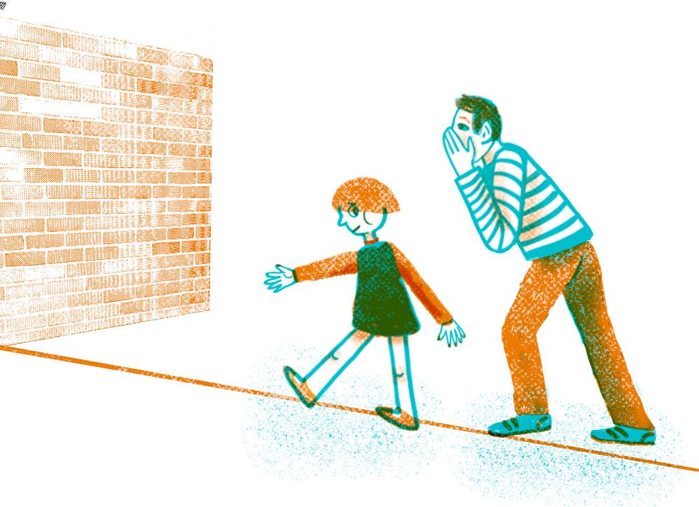 Между стенами спортивного зала натянута оранжевая веревка. По ней идет Айсулу, худенькая семилетняя девочка, стриженая «под горшок». Ступать нужно строго по линии и смотреть на вытянутую перед собой руку и указательный палец. Раньше Айсулу совсем ничего не говорила — боялась звука собственного голоса. Сейчас играет вместе со всеми, иногда что-то говорит, выражает возгласами настроение. Она ступает по линии, но сама пройти не может. Ей помогает Адиль. Он идет позади, приговаривая: «И еще шаг, и еще шаг». С каждым его словом Айсулу, набирая воздух в легкие словно при нырке, делает большой шаг вперед.
