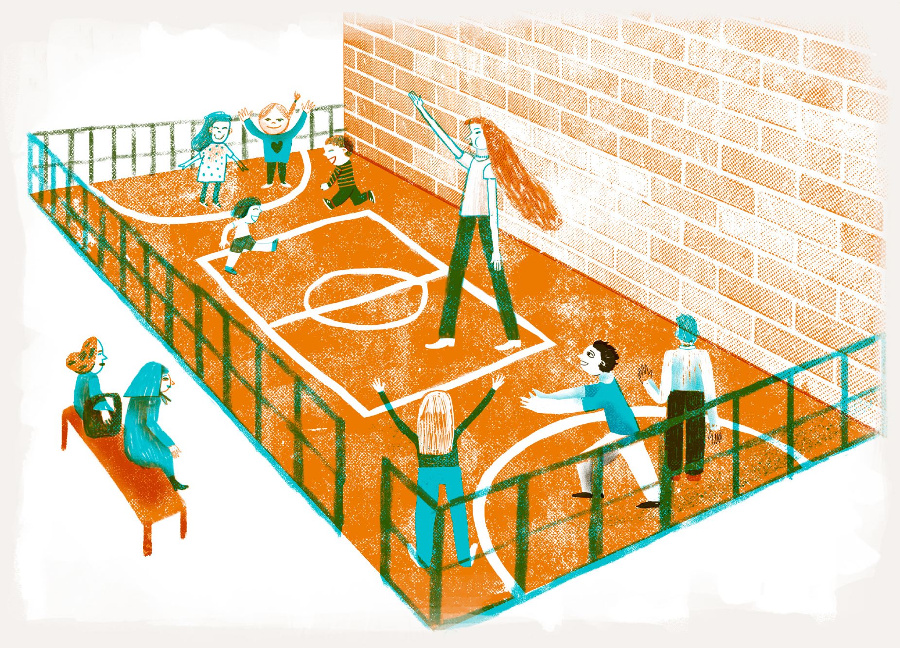 Взрослые и дети разделились на две команды и разошлись по противоположным сторонам площадки. Руководит ими высокая подтянутая девушка в белой майке — Лиля, социальный педагог и психолог.