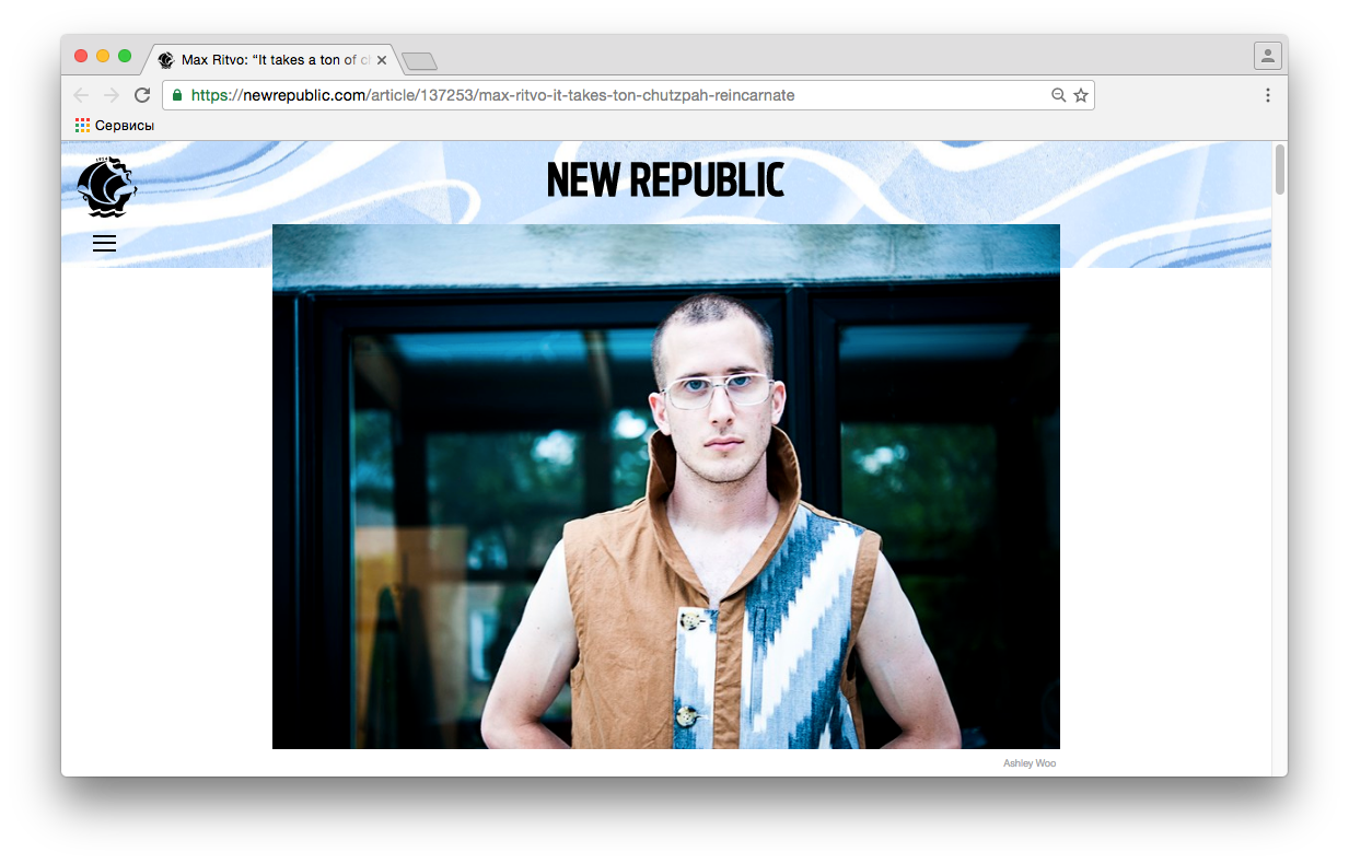 7. The New Republic публикует одно из многих интервью с американским поэтом Максом Ритво. Ритво навсегда останется 25-летним: в конце августа он умер от рака, которым страдал с 16 лет. Его дебютный сборник выйдет посмертно. Поэт относился к своей болезни с редким мужеством и юмором — борьбу с ней он описывал в своих стихах, которые и составили ему моментальную славу. Интервью озаглавлено «Чтобы реинкарнироваться, нужно уж совсем оборзеть» (Ритво использует еврейское слово «хуцпа»). Поэт отвечает на вопросы о духовности («Секуляризм поставил под вопрос наше отношение ко всему сверхъестественному. Но духовность необязательно должна быть сверхъестественной. Она может быть параллельной естественному. Или попросту естественной. <…> Все, чего требует от меня моя духовность, — чтобы я оказывался в ситуациях, которые кажутся священными. Чтобы у меня перехватывало дыхание, и я думал: „Не может быть, чтобы со мной происходило что-то настолько прекрасное”») и о том, как в его поэтической практике ему помогает опыт импровизационных спектаклей: «Любой импровизатор скажет, что первое правило импровизации — сказать „да” в ответ на реплику партнера, а второе правило — сказать „и”, отреагировав на эту реплику своей собственной. Надеюсь, что мои стихи хотят сказать это „да, и”… <…> Я хочу слушать мои стихи. И, если на то пошло, хочу, чтобы мои стихи слушали вас». А вот цитата из стихотворения Ритво: «Когда я умирал / мое тело все загорелось / как бывает когда я выхожу из дома / без кошелька. Так, что я забыл? спрашивал я, похлопывая по нагрудному карману».