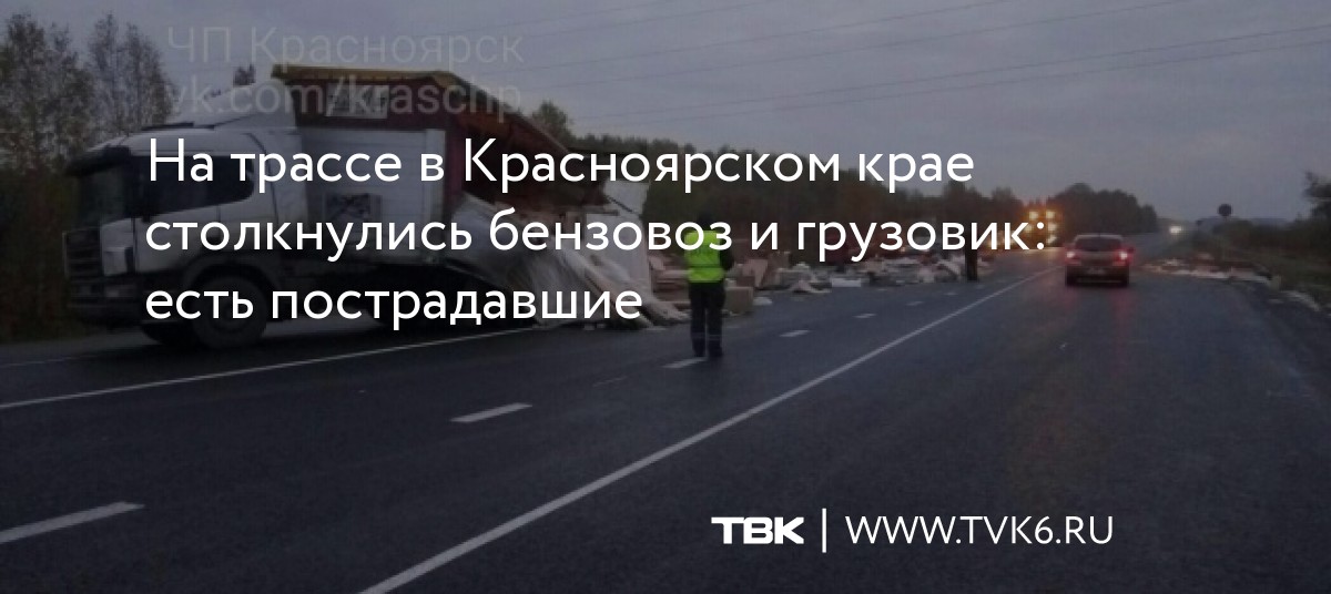 На трассе в Красноярском крае столкнулись бензовоз и грузовик: есть пострадавшие