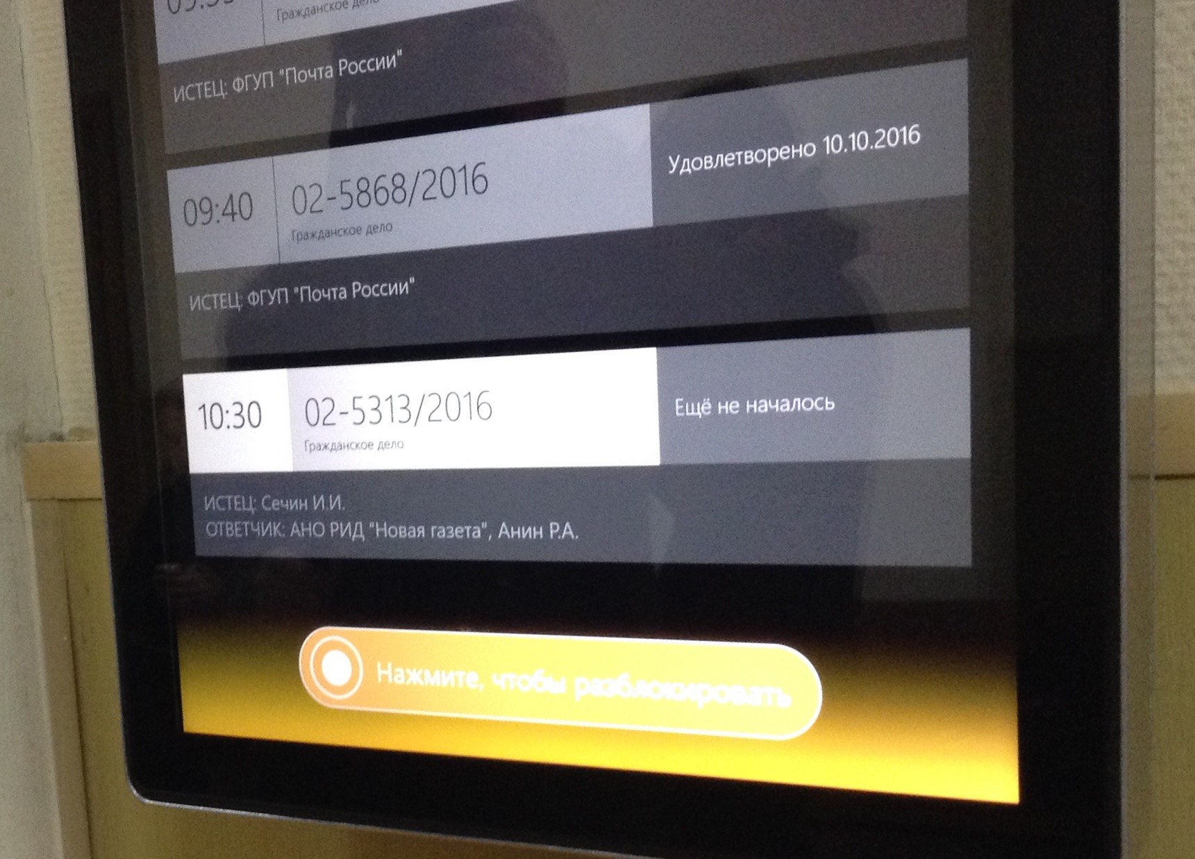 В суде сегодня не было ни Сечина, ни Анина. Главу «Роснефти» представляли двое юристов, а журналиста адвокат «Новой газеты» и заместитель главного редактора издания Сергей Соколов.