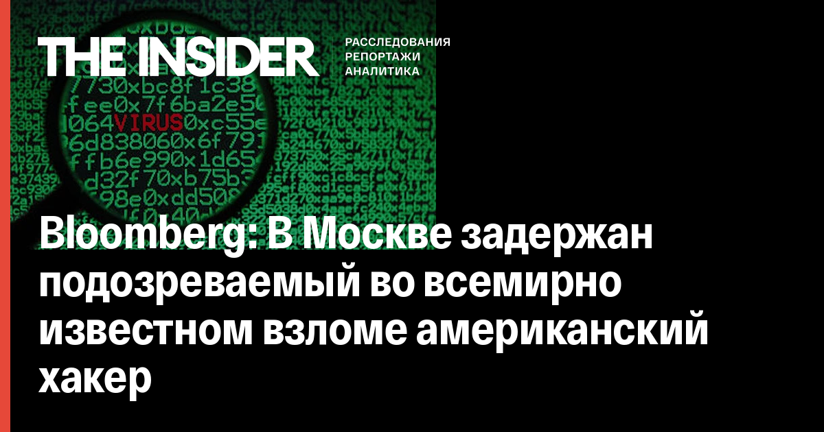 Bloomberg: В Москве задержан подозреваемый во всемирно известном взломе американский хакер