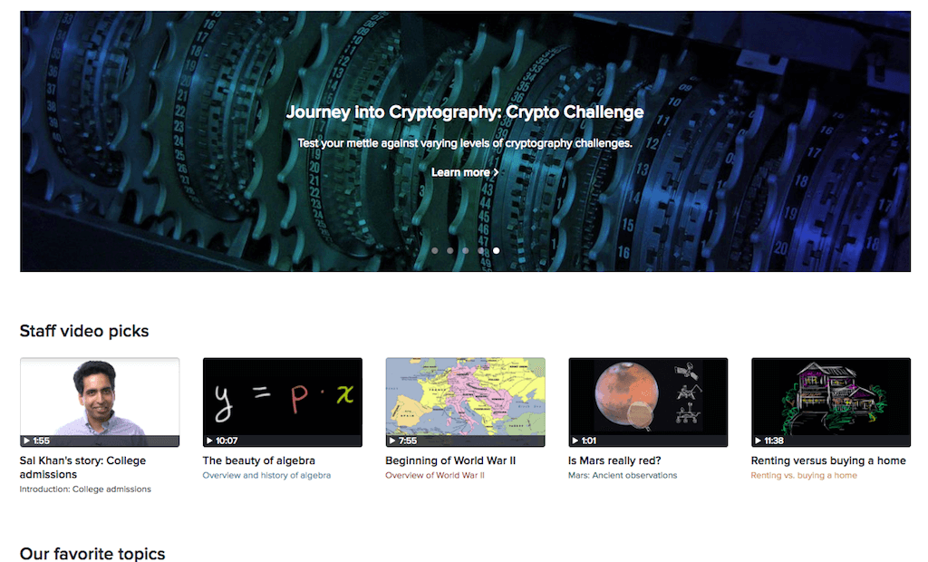 Предоставляет бесплатные персонализированные учебные ресурсы по математике, программированию, истории и другим наукам для всех возрастов. Созданный Салманом Ханом ресурс провел более 580 млн онлайн-уроков.