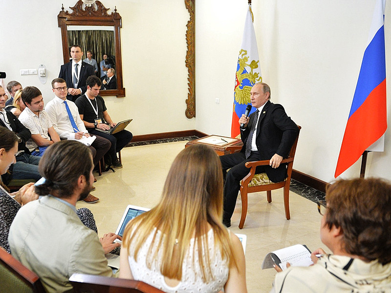 Президент России предупредил журналистов "кремлевского пула", что они могут быть интересны иностранным спецслужбам. "Вы все - объекты разработок соответствующих служб", - заявил Путин.