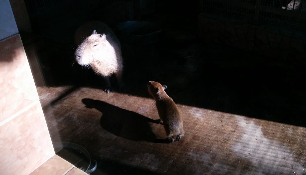 В начале 2016-го у Щорса появилась подруга Пани, которая до этого жила в Калужской области. Капибары сошлись, и 8 сентября у них родились два малыша. На следующий день они уже купались в бассейне — капибары с рождения довольно самостоятельны.