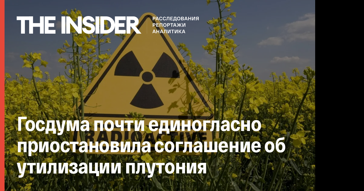 Госдума почти единогласно приостановила соглашение об утилизации плутония