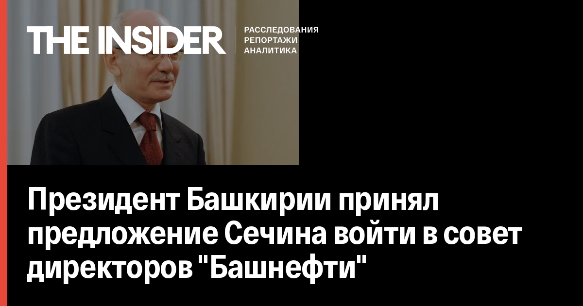 Президент Башкирии принял предложение Сечина войти в совет директоров "Башнефти"