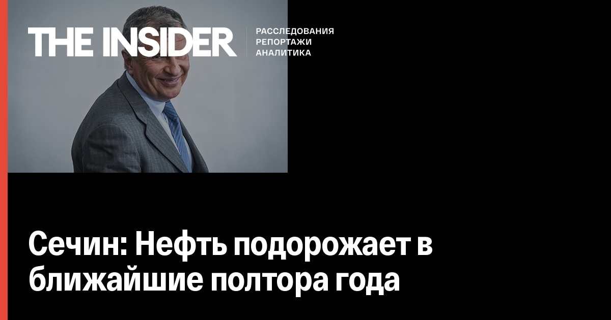 «В ближайшие полтора года мы должны увидеть завершение периода избытка предложения на рынке и начало процесса нормализации ситуации с коммерческими запасами нефти и нефтепродуктов. Цена на нефть превысит 55 долларов за баррель. Сохранится низкий уровень инвестиционной активности в крупных и сложных проектах, прежде всего развиваемых «мейджорами«, так как экономика этих проектов требует более стабильных и более высоких цен», - сказал Сечин.