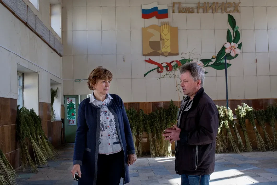 По конопле Ольга Николаевна спец. У нее кандидатская диссертация была на эту тему, она соавтор четырех сортов. На работу она приходит со своим компьютером (у института на технику средств нет) и трудится в своем аскетично оборудованном кабинете. Окна закрыты газетой, чтобы солнце не слепило, на стенах — дешевые обои, уже местами отклеившиеся. За спиной — пара советских шкафов. В углу — старый холодильник «Бирюса». В таких условиях делается наука, притом делается весьма продуктивно.