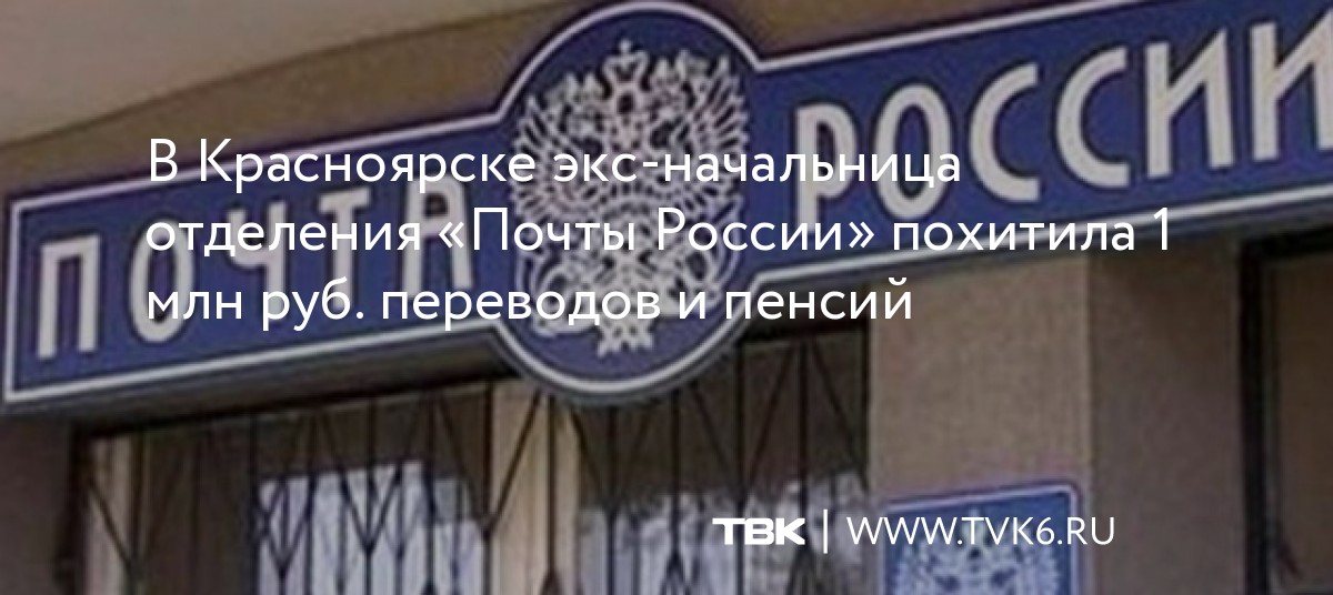 В Красноярске экс-начальница отделения «Почты России» похитила 1 млн руб. переводов и пенсий