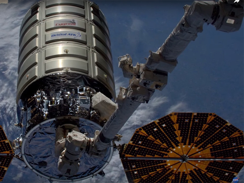 Грузовой корабль Cygnus, запущенный в космос ракетой с российскими двигателями, пристыковался к МКС. Об этом сообщается на сайте американского аэрокосмического агентства NASA.