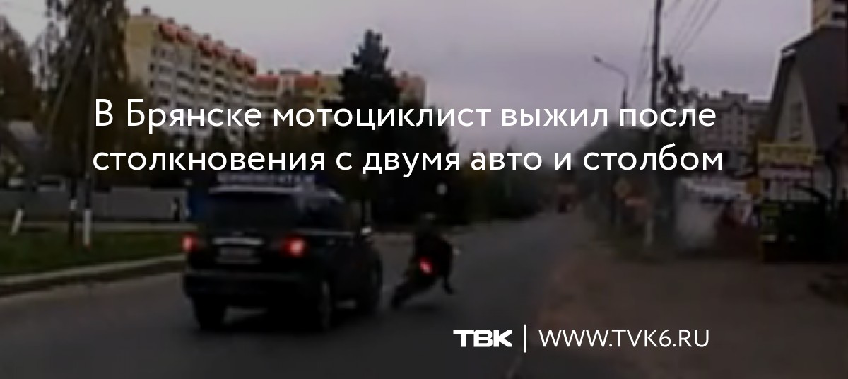 В Брянске мотоциклист выжил после столкновения с двумя авто и столбом