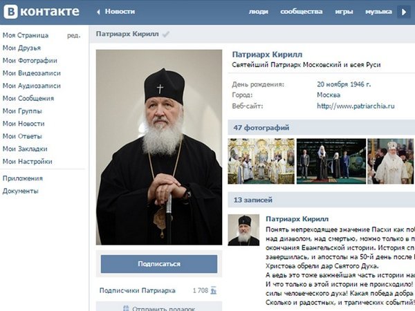 Глава Русской православной церкви патриарх Кирилл предостерег свою паству от погони за лайками в соцсетях, так как, по его словам, пользователи могут поддержать и неправильные идеи, при этом «увлеченный этой виртуальной поддержкой человек теряет жизненные ориентиры».