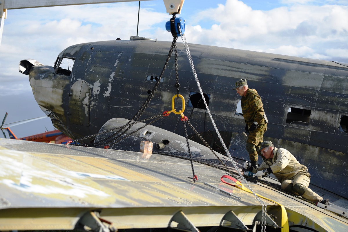 Именно здесь 69 лет назад этот самолет, на борту которого находились 36 человек, как говорят пилоты, "сел на вынужденную" и почти семь десятилетий пролежал в тундре. Часть экипажа во главе с командиром, а также несколько пассажиров тогда погибли, остальных удалось спасти. А этим летом самолет вновь поднялся в воздух – на внешней подвеске вертолета, проделав путь в 80 километрах до реки Пясина, потом на барже до Валька, а оттуда на трейлерах в Дудинку. Затем путь "Дугласа" продолжился на теплоходе до Красноярска, где он и станет главным экспонатом будущего Музея освоения русского Севера.