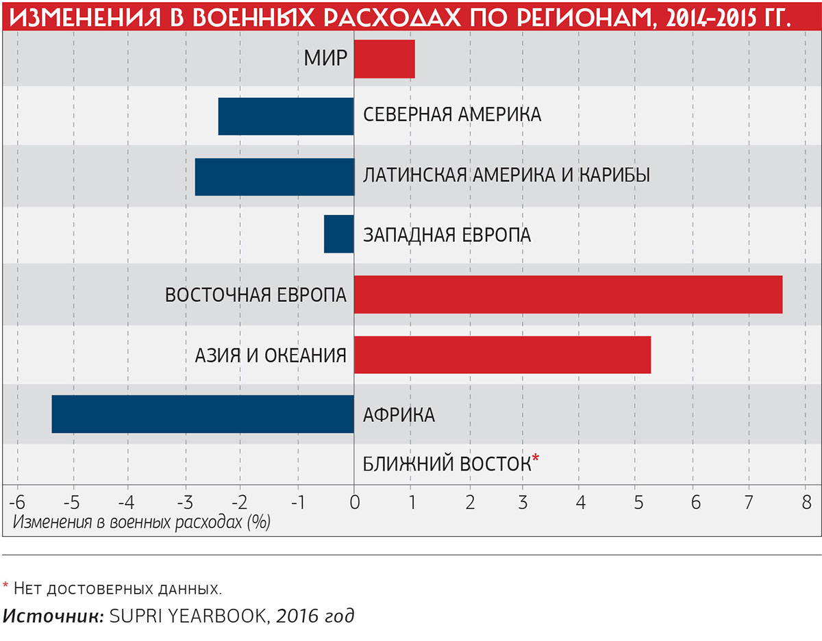 Теперь Россия тратит на оборону почти четверть расходов федерального бюджета — 23,7%. Это немногим ниже 5% ВВП. Еще в 2011–2013 годах военные расходы составляли порядка 2,7–3,2% ВВП, а в 2000-е годы — около 1,5% ВВП. Самые мирные страны тратят на оборону порядка 1% ВВП, Китай и Франция — около 2%, США — 3,5–4%. Военных расходов на уровне 5% ВВП в наше время не найти ни у малых, ни у больших держав, если только они не ведут войну. На самом деле этим военные расходы не исчерпываются, отмечает Василий Зацепин из Института экономики переходного периода им. Егора Гайдара. Ведь часть денег на оборону записана в бюджете как средства, выделяемые на секретные статьи внутри разделов «культура», «здравоохранение», «образование» и т.д., — например на детские дошкольные учреждения (эта статья также засекречена).