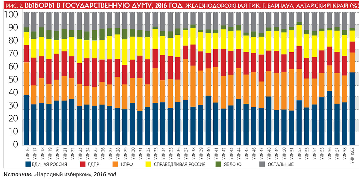Очевиден провал партии власти в продвинутых столичных регионах и смещение зоны ее поддержки на социокультурную, политическую и географическую периферию. Которая исстари отличалась приверженностью к фальсификационным технологиям и зависимостью результата от местных властей. Наскоро перечислим регионы максимальной поддержки ЕР с востока на запад. Чукотка, Тыва, Кемеровская область, Ямало-Ненецкий АО, Тюменская область, Башкортостан, Татарстан… Далее прямиком к Брянской области вдоль знакомого по 1990-м годам «красного пояса» в Черноземной зоне. Плюс, само собой, Северный Кавказ и Предкавказье, всегда отличавшиеся консервативностью и доминированием административного ресурса. Достаточно вспомнить станицу Кущевскую, которой руководили известные активисты ЕР. И всегда обеспечивали на вверенной им территории самые передовые электоральные показатели — даже на фоне всеобщей восторженности Краснодарского края.