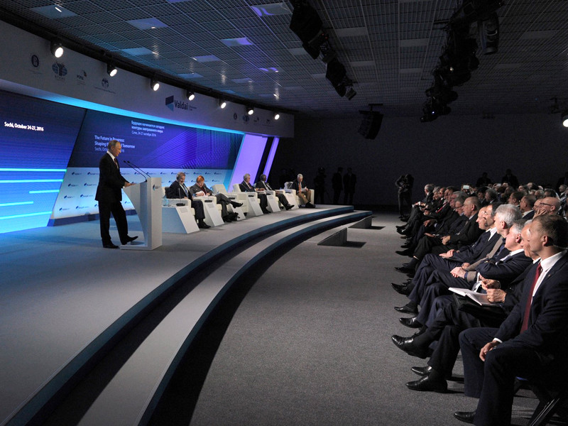 Президент Владимир Путин выступил в четверг, 27 октября, на пленарной сессии международного дискуссионного клуба "Валдай" в Сочи. Значительная часть этого выступления, как и выступления на форуме "Россия зовет!" 12 октября, была посвящена внешней политике России и отношениям с западными странами.