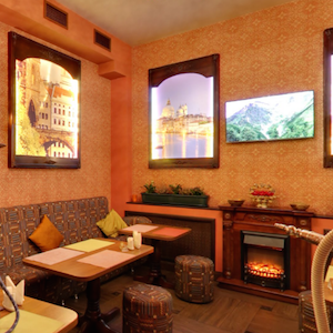 Семейный ресторан в пастельных тонах с настоящим камином и многолетней историей. В 1990 году в малом зале было открыто кафе, позднее в главном — банкетный зал. Сейчас малый зал стал детской комнатой, где иногда проводятся детские праздники. Шеф-повар из Баку готовит блюда азербайджанской, грузинской, дагестанской и европейской кухонь.