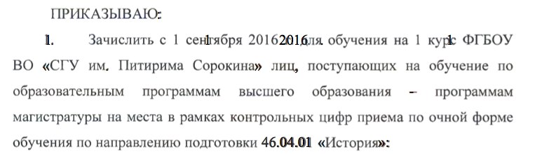Затея удалась частично: приём, конечно, не провалили, но на 24 бюджетных места пришло 28 (!) человек. Из 24 рекомендованных к зачислению половина попросилась на историю, половина на урбанистику. 15 августа Наталья Михальченкова издала приказ об их зачислении… в котором не оказалось сведений о том, кто на какую программу зачислен. Ну вот так вот: просто «зачислить в СГУ на бюджетные места в рамках КЦП по направлению «История».