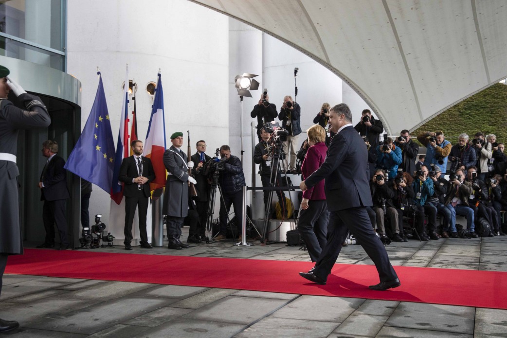 Петр Порошенко перед встречей в "нормандском формате" 19 октября 2016 Пресс-служба президента УкраиныНо противники предложения Порошенко — то есть, судя по всему, Ангела Меркель и Франсуа Олланд — считают, что оружие у представителей ОБСЕ может спровоцировать «неизвестно кого» на применение против них самих огнестрельного оружия, а сила наблюдателей ОБСЕ в том, что они «представляют солидную, общепризнанную международную организацию, и они сами не вооружены».