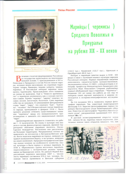 Искал в интернете старинные открытки с фотографиями марийцев (черемис) и наткнулся на журнал "Филокартия". А там - в № 9, 2014, - статья земляка (йошкаролинца) С. В. Старикова "Марийцы (черемисы) Среднего Поволжья и Приуралья на рубеже XIX-XX веков".