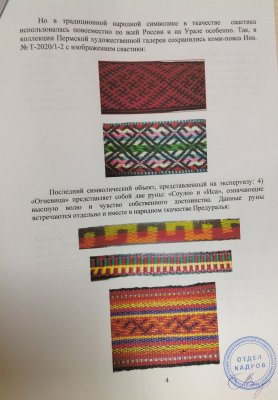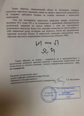 Суд в Перми признал виновным резчика по дереву Сергея Каменева, продававшего свои работы на фестивале «Купальские ночи», в демонстрировании символики, схожей с нацистской (по статье 201.3 КоАП) и оштрафовала его на тысячу рублей. Об этом сообщает 31 октября агентство «Перископ». Суд также постановил изъять три работы художника. Еще одна участница фестиваля Черепанова, была оштрафована за узор на вышивке.