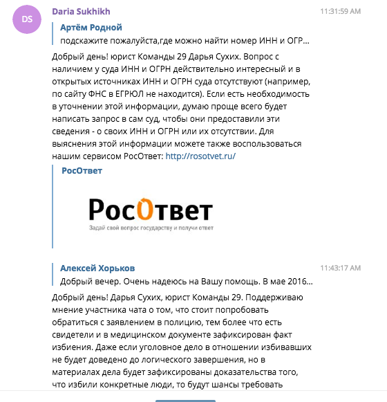 Петербургское неформальное объединение юристов и журналистов «Команда 29» консультирует по вопросам, связанным с доступом к информации, общением со спецслужбами, информационной безопасностью и правилами поведения в интернете (как не получить уголовное или административное наказание за пост или репост в социальных сетях). Получить ответ можно с 10:00 до 20:00.