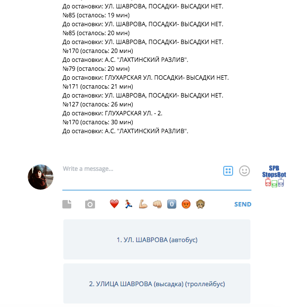 Бот с расписанием наземного транспорта в Петербурге