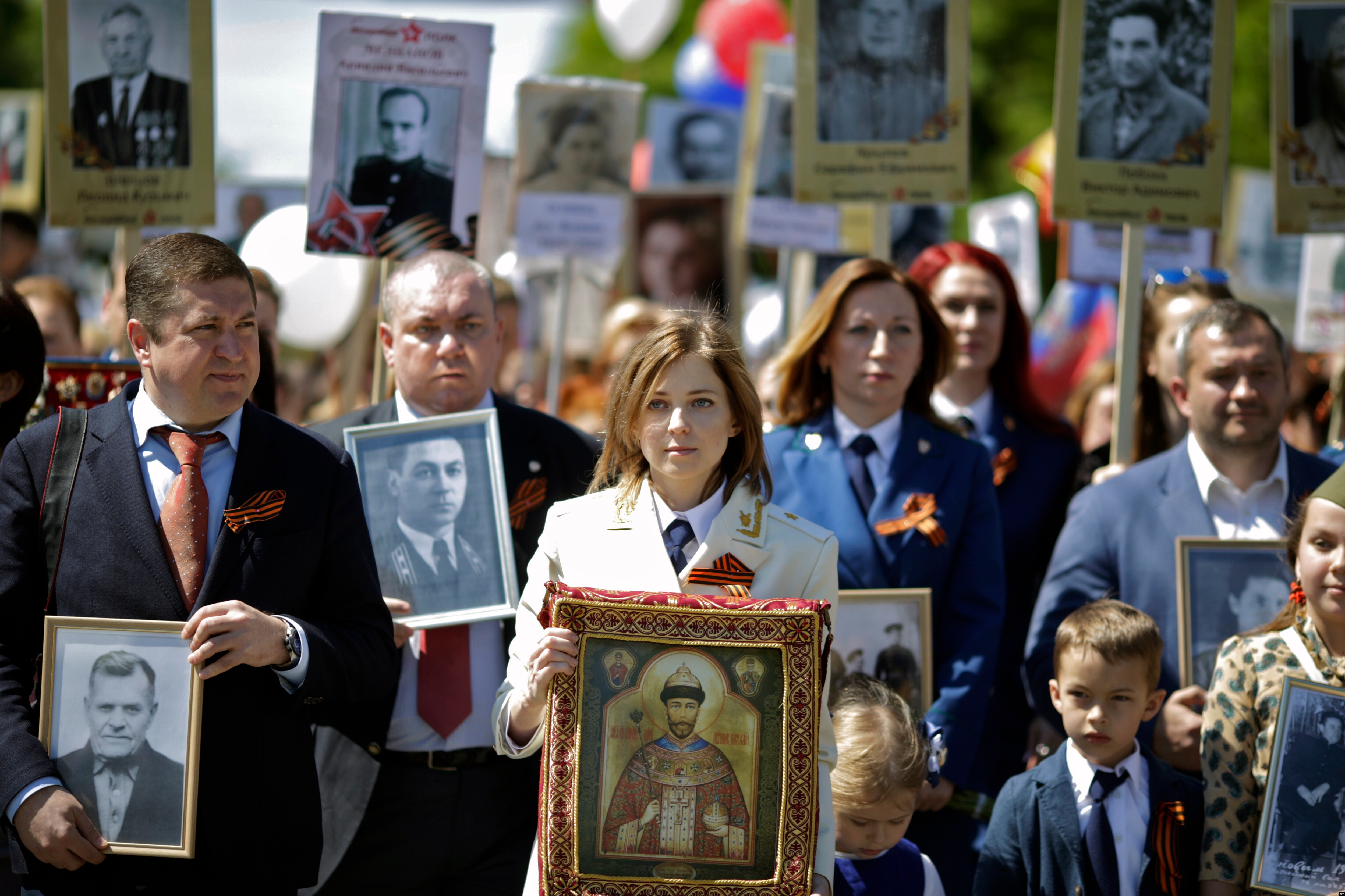Наталья Поклонская известна своими монархическими взглядами. 9 мая нынешнего года она вышла на шествие "Бессмертный полк" с портретом Николая II.