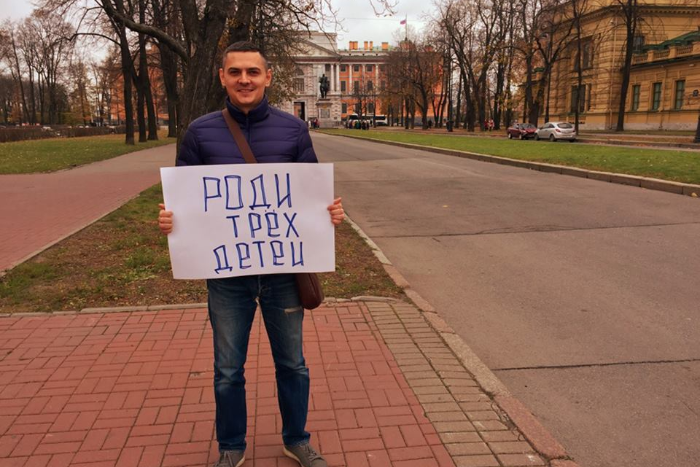 В ответ на увы-парад активисты сфотографировались с плакатами «Роди трех детей» и «Меняй свою жизнь сам»