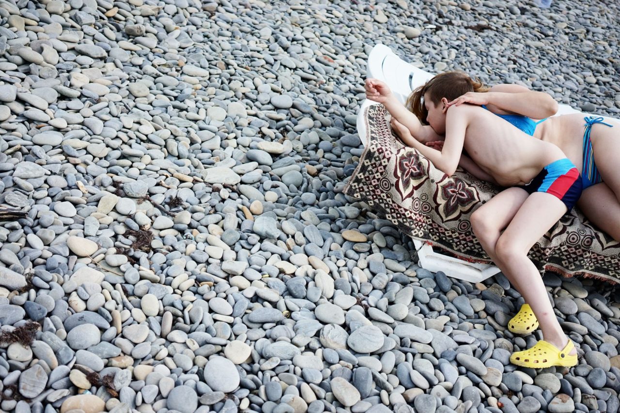 Аутизм сложно передать на фото — обычно человек с аутизмом не слишком отличается от человека без него, если только во время стимов: так называются повторяющиеся движения, например, раскачивание взад и вперед, кружение на одном месте, быстрая ходьба туда-сюда или расчесывание кожи. У Ромы тоже есть стимы — он трясет перед лицом кистями рук, а еще иногда их лижет. Ему 11, и у него не только аутизм, но и ДЦП. На полусогнутых ногах Рома, держа маму за руку, подходит к морю. Иногда волны оказываются совсем близко, разбиваются брызгами у самых ног. Рома вздрагивает, но не уходит.