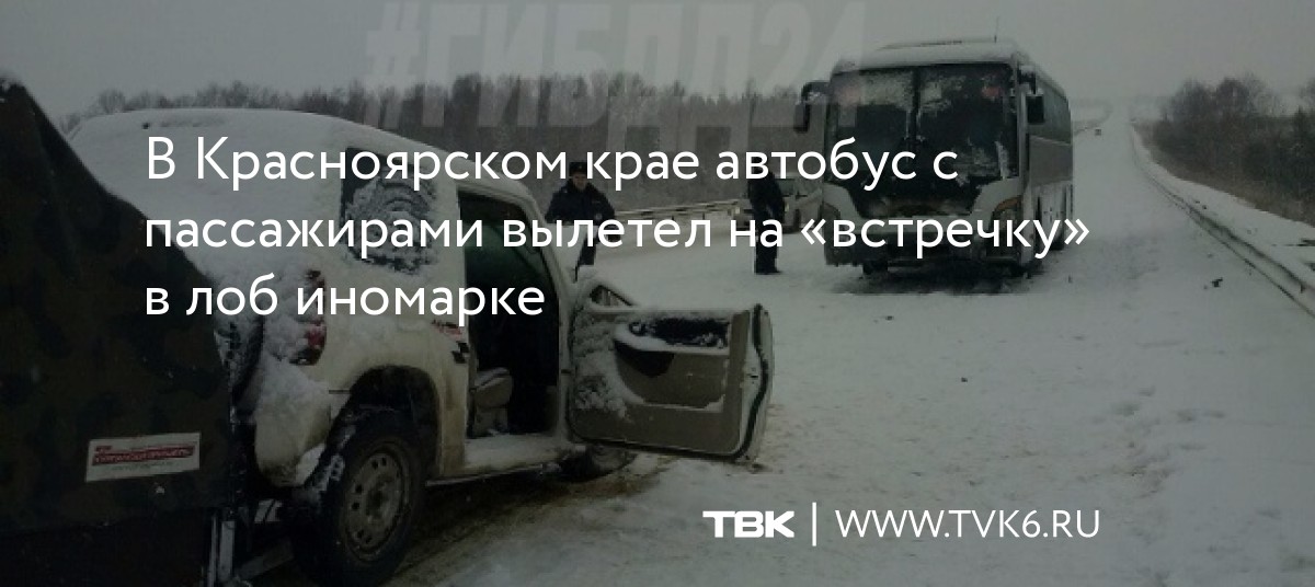В Красноярском крае автобус с пассажирами вылетел на «встречку» в лоб иномарке