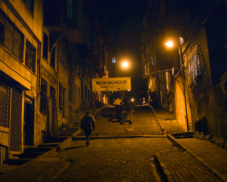 География этих прогулок, если расчертить их на стамбульской карте, огромна. От старых районов вдоль Золотого рога мимо вокзала Сиркеджи, вверх по улице Истикляль, по неспокойному району Тарлабаши, откуда после погрома 1955 года и насильственной депортации 1964-го были изгнаны все греческие, еврейские и армянские обитатели; к холмам за районом Меджидиекей, пережившим первое нашествие анатолийской бедноты: в 1960-х каждый приезжий старался выгородить себе здесь уголок земли, в нулевых на ней возвели многоэтажные дома, где вчерашние мигранты получили новые квартиры.