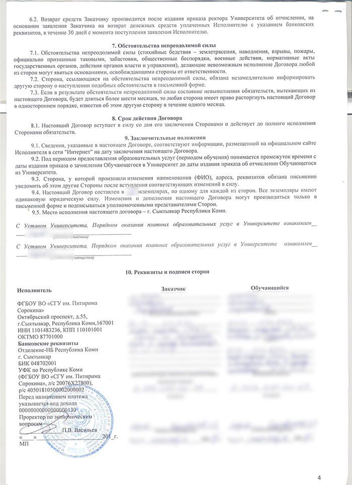 Согласно закону об образовании, СыктГУ должен был перевести нас, аспирантов, на аккредитованные направления подготовки в другие вузы. Но никаких действий со стороны вуза предпринято не было. И самое главное — отсрочка. Мы поступали на аккредитованные направления подготовки, нам официально была дана отсрочка на срок обучения. Законна ли ее отмена, если вуз не выполнил ни один из вышеуказанных мной пунктов?