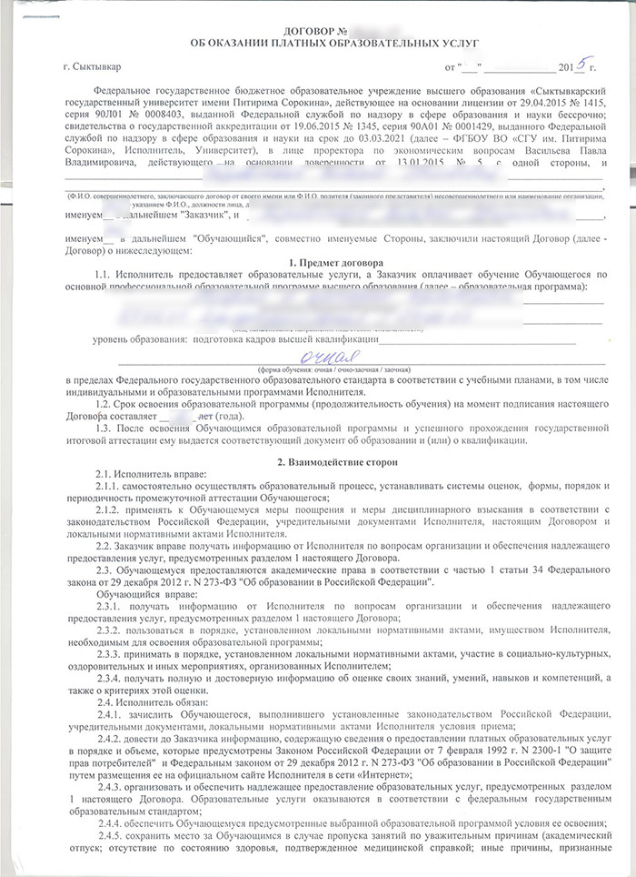 «3 марта 2015 приказом Рособрнадзора № 247 вузу выдается новая аккредитация, в которой в качестве аккредитованных указаны программы бакалавриата, специалитета, магистратуры и… все. Ни СПО [программы среднего профессионального образования], ни аспирантуры в приложении к свидетельству об аккредитации нет. В июне 2015-го происходит „техническое“ переоформление аккредитации (по всей видимости, в связи с переименованием вуза), а в июле 2015-го СыктГУ получает аккредитацию программ СПО по информатике и по экономике (приказ Рособрнадзора от 17 июля 2015 № 1234). На момент проведения приемной кампании в аспирантуру в 2015 году у СыктГУ аккредитации по этим программам НЕТ».