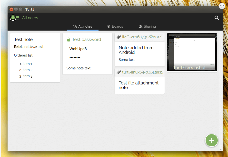 Все записи можно организовать в разных «досках» (boards). Они могут быть доступны и другим пользователям Turtl. К заметкам можно добавлять теги. Поиск работает по дате создания записи, дате обновления, ключевым словам, автору последней правки и по прикрепленным тегам. Перед сохранением записей Turtl шифрует данные, используя криптографический ключ и пароль, которые не хранятся на сервере. Так что читать ваши данные может и другой человек, с кем вы хотите ими поделиться.